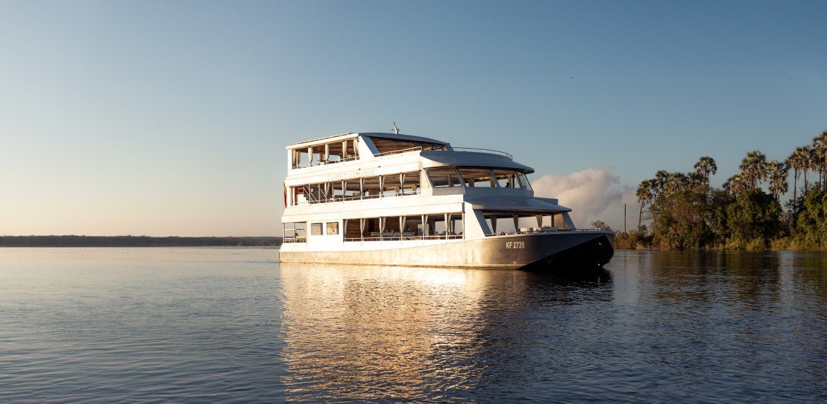 16:20 Pick Up & Experience a Luxury Sunset Cruise on the Zambezi River in Victoria Falls, featuring a premium 4-course dinner and a selection of drinks included. Enjoy breathtaking African sunset views, tranquil river surroundings, and the chance to spot wildlife along the riverbanks. This exclusive Victoria Falls river cruise combines fine dining, relaxation, and quiet elegance, making it the perfect way to end your day. Indulge in locally inspired gourmet cuisine, expertly prepared, for an unforgettable luxury travel and safari experience in Victoria Falls.